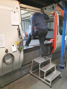 Die Metallbau Nick GmbH aus dem südhessischen Lampertheim nutzt für Wartung und Montagearbeiten im unternehmenseigenen High-Tech-Maschinenpark seit kurzem einen Maschinetritt von Steigtechnik-Profi HYMER. Auf breiten Stufen gelangen die Maschinenbediener sicher an jede notwendige Stelle in bzw. an der Maschine. (...)