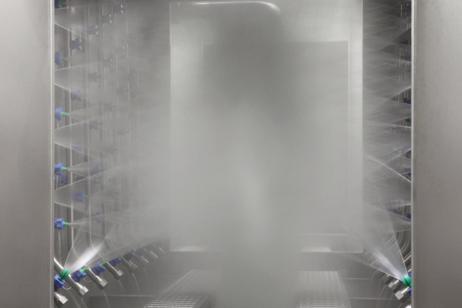Bevor Kunststoffteile wie zum Beispiel Stoßfänger in die Lackierung gehen, müssen die Werkstücke gereinigt und vorbehandelt werden. Die Sauberkeit der Teileoberfläche ist entscheidend für ein optimales Ergebnis in der Lackierung. Für diese Vorbehandlung haben sich schon seit Jahren Powerwash-Anlagen bewährt. In diesen werden Kunststoffteile mit einer wässrigen Reinigerlösung bei Temperaturen von üblicherweise 45 bis 70°C mittels Spritzanwendung behandelt. Die hohen Temperaturen sind notwendig, um hartnäckige Verschmutzungen zu lösen, aber auch um die Bäder schaumarm zu halten, was somit Überschäumen und unnötigen Wartungsaufwand verhindert. Moderne Lackieranlagen laufen in der Regel 24 Stunden 7 Tage die Woche im Dauerbetrieb. Auch in der Vorbehandlung muss die Prozesstemperatur deshalb dauerhaft hoch bleiben. Das verursacht enorme Energiekosten.